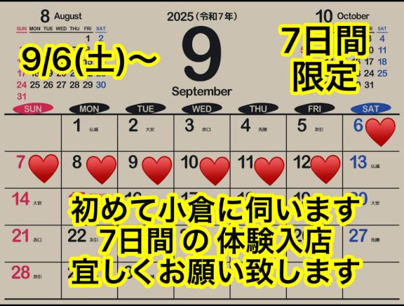 今日から出勤します♪本日8月30日〜9月9日までの短い期…